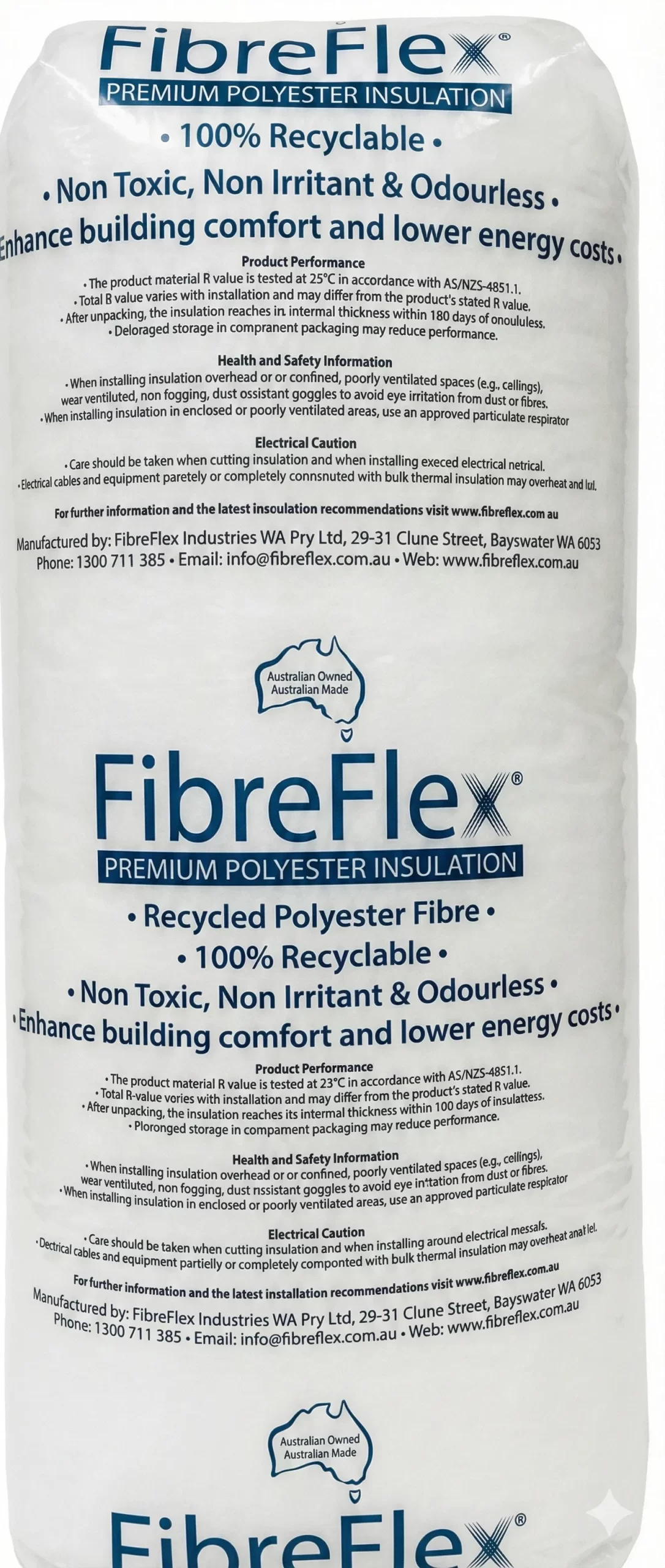 Fully compliant with rigorous AS/NZS 4859.1 standards, these highly durable batts and rolls will not absorb moisture or deteriorate. Whether you are insulating residential walls, sub-floors, or ceilings, FibreFlex Polysupreme delivers both outstanding thermal control and premium acoustic performance.